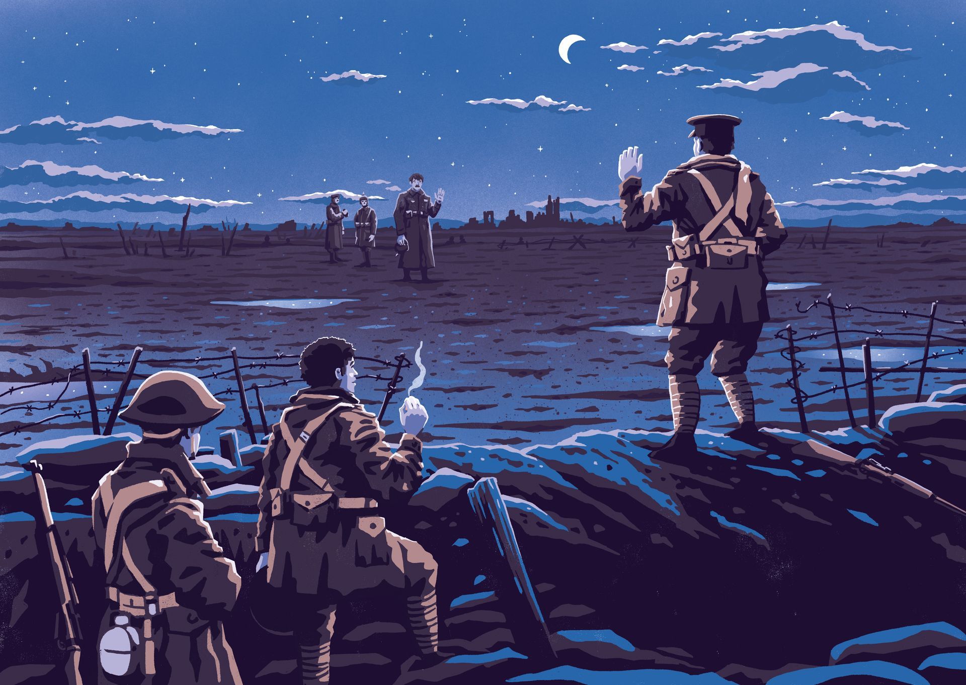 Foi engraçado caminhar sozinho em direção às trincheiras inimigas para encontrar alguém no meio do caminho e, depois, combinar uma trégua de Natal. Será algo para lembrar toda a vida.